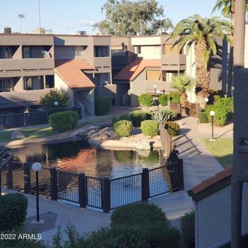 Quiet second floor courtyard facing unit with beautiful views of the pond and fountain. Water Works is part of Dobson Ranch with community pools, tennis parks, clubhouse and more. Close to US 60, 101 Freeways, Fiesta Mall, MCC and Banner Desert Hospital. NO WATER BILL.