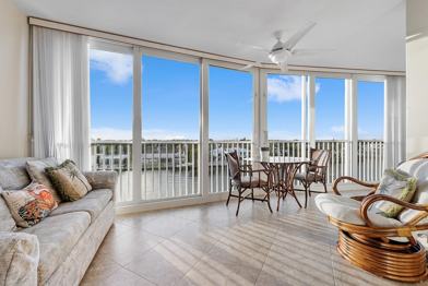 Turn Key 2/2 with Breathtaking INTRACOASTAL & OCEAN VIEWS. A Boaters Paradise awaits you from this Stunning 6th Floor Residence. This property has the ideal height and vantage to enjoy the many luxurious Boating and Water activities in Highland Beach. Open Kitchen, New Carpet in both bedrooms. Full Impact Sliders and windows. Seagate of Highland features affordable luxury amenities such as private deeded Beach access, Dockage, Clubhouse, 2 New pools, bocce ball, fitness room and putting green.