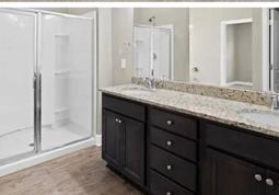 Open concept living and dining room ideal for entertaining. Elegant tray ceilings, spa-like en suite bathroom complete with soaker tub no dual vanities. Luxury vinyl flooring throughout the main living areas, plush carpeting in the bedrooms, and soaring 9' ceilings add a touch of elegance. This house has an irrigation system to keep your landscaping lush and it is located in a prime location.