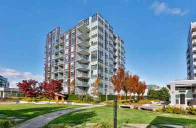 Cadence by Cressey. Spacious 1 bedroom. Bright South facing exposure with City views and large balcony off living room. Good sized master bedroom with walk-in closet, Custom kitchen with high end cabinetry finishings, lots of storage, gas range and a built-in gourmet double fridge, air conditioning. Centrally located in Richmond's Oval Village short walking distance to Fraser River, T&T supermarket, Olympic Oval Rec Centre, Lansdowne Station and Steve Nash fitness, restaurants and banking downstairs. One parking spot included. Rent doesn't include Move in/out Fee, BChydro.