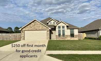 $250 off first month's rent for good credit applicants. Now available for rent, this modern 3-bed, 2-bath home in the Orchard Park subdivision at 3550 Macintosh Way offers comfortable living in the heart of fast-growing Centerton. Built in 2020, it features an open layout with tall ceilings, abundant natural light, and a stylish kitchen with granite countertops and stainless-steel appliances. The dining area connects easily for everyday meals or hosting. The primary suite includes a spacious bedroom, walk-in closet, and a well-appointed bathroom with double vanities, soaking tub, and separate shower. Washer and dryer are included. Located close to I-49 and just minutes from Bentonville, this home provides quick access to top-rated Bentonville schools, nearby parks, expanding retail and dining options, and convenient commuter routes, all within a welcoming suburban community. Includes fridge and washer/dryer. Pets negotiable with non-refundable deposit and monthly pet rent.