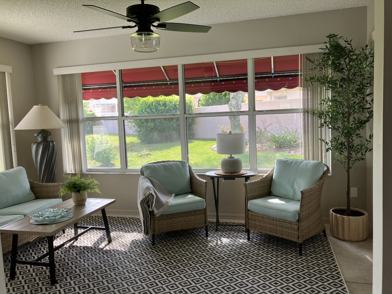 High season availability. January 2026: $4000. Short golf cart ride to Spanish Springs. ALL UTILITIES INCLUDED! No pets allowed due to owner's allergies. This is not negotiable, so please don't ask. Security deposit for one month is $500. For multiple months, the security is $1000. There are no administrative, service, or management fees, so this is a bargain compared to other rental sites for Villages properties. Compare and you will be amazed at the savings!! This very comfortable 2bed/2bath ranch in the village of Rio Ranchero North is located in the Spanish Springs area. In this area of The Villages, the landscaping is mature and absolutely beautiful. Lots are larger, so you will not be right on top of your neighbor. The northern area is very different from the south. Southern homes have postage stamp sized lots and the landscaping is sparse. There is plenty of shopping available nearby. That is a major factor to consider. Be aware of how far you will need to travel to shop! The home is in a quiet neighborhood but a short golf cart ride to the squares of Spanish Springs or Sumter Landing. Tenant is responsible for rent plus 7% Florida transient tax, $50 Village ID fee, $150 non-refundable cleaning fee, $500 security deposit, which will be refunded if the home is left in the same condition as found and the garage door opener and electronic gate pass are returned. A government issued ID is required for all parties on the lease. The primary bedroom has a queen bed and the second bedroom has 2 twin beds. Both bedrooms have TVs. The bedrooms and baths are on opposite ends of the home for total privacy when you have guests. There is a pocket door which separates the guest area from the main living area. There are two screened lanais (one in the front and one in the rear) and a very private backyard with a tall wall obscuring the view of neighbors behind you. Always check the backyard view before renting a home!*** Recent upgrades: new grill, 75 inch TV in the living room, new vacuum cleaner, 2 new beach chairs, cooler and insulated beach bag, electronic tire inflator with PSI measuring tool, new clothes dryer, new rear tires on the golf cart, a pickleball , 2 all weather rockers on the front lanai, new washing machine, new ceiling fans in guest bedroom and sunroom. ***The rates quoted are for 2 people occupancy. Maximum 2 guests. ***If a MAILBOX is needed, one must be rented from UPS or USPS. Owner's mailbox is private. If moving and you need to store household items, you must rent a storage facility. There is garage parking for one car and the golf cart. Once again, there is no room for personal household item storage. The driveway is a half circle with parking for 4 vehicles. Contact: Denise Basens 856-453-1995