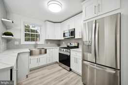 Welcome to the completely renovated 156 Edgemont Avenue in the heart of Ardmore. Award winning Lower Merion School District. Corner fenced-in property. As you walk into your covered front porch with fan, you will be greeted by the bright spacious living room. The gorgeous luxury vinyl floor extends throughout the bright and spacious first floor. The open kitchen with brand new LG stainless steel appliances, including a dishwasher and built-in microwave. The sliding door off of the dining room extends the space to a large back deck lit up by solar lights on each post. As you walk upstairs on the brand new carpet, you will find 3 large bedrooms and a full bathroom with a soaking tub and storage. The basement offers a washer and dryer with ample storage. In addition, a fully accessible garage with parking.
