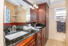 The large, open-concept kitchen boasts rich cherry wood cabinets, granite countertops, and ample workspace, making it ideal for cooking and entertaining. Two walk-in showers enhance the convenience of the home, adding a touch of luxury to the bathrooms.