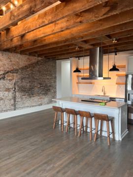 Newly built loft style apartment in historic downtown Canandaigua. 1 bedrooms with Juliette Balcony, 1 fully tiled bathroom with custom glass doors, laundry facilities en-suite, white kitchen with floating shelves, lofted living room, exposed brick in living room/kitchen and bedroom. Off street parking.