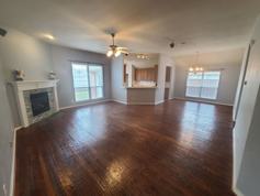 This wonderful one story home has an open living, dining, and kitchen floorplan with lots of natural lighting, tall 9 foot high ceilings, and split bedrooms as well. Additionally, it comes with all the appliances you will need and features hand scraped hardwood floors in the main living areas with tile in the kitchen and baths. The kitchen has plenty of cabinets and a walk-in pantry for storage. The kitchen also has eat-in dining that overlooks the backyard and a breakfast bar which overlooks the living room with an eye-catching gas fireplace with mantel and tiled surround as it's centerpiece. The master bath includes a dual sink vanity, garden tub, separate walk-in shower, and large walk-in closet. Other features include ceiling fans, separate laundry room, 2 inch window blinds throughout, vaulted ceilings in bedrooms, and a tall, wood privacy fence in the low maintenance backyard. This property comes with all appliances including a refrigerator and washer/dryer.
