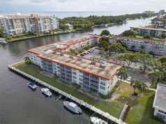 Do not miss this furnished 2 bedroom, 2 bath condo rental with amazing canal and Intracoastal views. Located in Lighthouse Points hidden gem of Palm Aire. From the moment you walk in you are greeted with waterfront views & tons of natural light. The kitchen has been updated & opens into the dining room and living room. The enlarged living area has sliders so you can enjoy the waterfront breezes from the Intracoastal. The spacious primary bedroom is tastefully decorated, has a large walk-in closet & updated bathroom. The 2nd bedroom has tons of storage & queen Murphy bed with wonderful waterfront views. Impact windows & doors, great water views & more! Enjoy the Intracoastal from the pool at Palm Aire, lots of parking, clubhouse and all the amenities of this waterfront community.