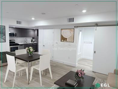 * Spacious Kitchen with New Beautiful modern quartz countertops and custom soft-close cabinetry. The modern kitchen is also equipped with stainless steel appliances, including a new Range Hood, Dishwasher, and Refrigerator.