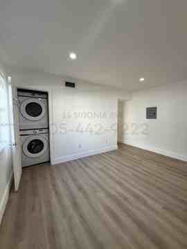 Beautifully renovated 2-bedroom, 1-bath apartment offering 950 square feet of modern and functional living space, located on the first floor of a charming two-story fourplex. Features elegant tile flooring throughout and a brand-new kitchen with white cabinetry, quartz countertops, stainless steel appliances, and a cozy breakfast nook. The living area offers ample space, and the unit includes an in-unit washer and dryer. The primary bedroom measures 10x10 and includes a closet, as does the second bedroom. The bathroom has been renovated with a glass-enclosed shower and modern finishes. Central air conditioning throughout. Boutique-style building in an excellent central location, just north of Downtown Coral Gables and minutes from Brickell, Little Havana, and Miami International Airport. Street parking available. A great opportunity to enjoy comfort, style, and convenience.