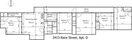 3413 Race St #D, Philadelphia, PA is a 5 bedroom, 2 bathrooms apartment for rent. It is located in the Powelton Village neighborhood of Philadelphia. It has apartment amenities including central heat, dishwasher, microwave, in-unit laundry, air conditioning, and balcony. Cats are allowed, making it a pet-friendly apartment.