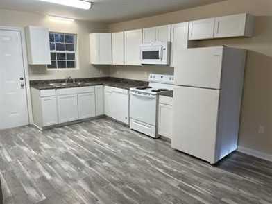 Newly remodeled 2 bedroom/1 bath apartment available for rent. Includes stove, over the range microwave and dishwasher. Unit has energy efficient vinyl windows, electric central heating and air, and electric hot water heater. Unit has washer/dryer connections with private parking.