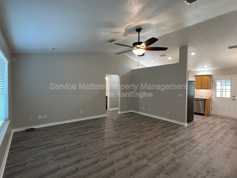 This 3 bedroom home has been packed with upgrades to make it a home like no other. Cool-toned paint, Lvp flooring, and modern lighting can be found throughout. The kitchen includes stainless appliances. And the bathrooms have been updated with beautiful vanities and new shower and tub installs. Through the front door of this home, you'll enter into the spacious living room with vaulted ceilings. Beyond, you'll discover the casual dining area and kitchen. You can also access the covered, back patio area from here. The owner's bedroom is located off the kitchen too, and offers plenty of space for your bedroom suite; you'll also love the walk-in closet and don't forget to check out the spa-style shower in the owner's bathroom. The guest rooms are located off of the living room along with the guest bath. Need additional room for an office or flex space? The garage has been beautifully converted to be the perfect flex space. The backyard includes a privacy fence surround, and the covered patio is truly spacious. Contact our office today to check it out.