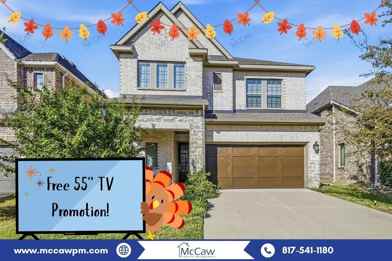 Experience a harmonious blend of luxury and comfort in this stunning home nestled in the coveted neighborhood of Kings Court. This home is a testament to top-quality construction and excellent attention to detail. With highly sought-after Frisco Isd schools, it boasts a bright, open layout, light-colored Lvp flooring, a beautiful white kitchen with a gas cooktop, black quartz countertops, and a gas fireplace to cozy up next to. This two-story house has all bedrooms upstairs, including a spacious primary bedroom with a large soaking tub. The property also features a spacious backyard with a covered patio and a Bob wood fence.