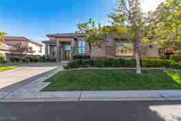Welcome to the luxurious guard gated community of Queensridge! Beautiful & highly upgraded home built by the award-winning builder Christopher Homes. Enter through the double doors into the dramatic living room with a 2-story stone floor to ceiling height fireplace, with soaring ceilings, elegant staircase, and formal dining room. Family room is oversized with full wet bar, gas fireplace, and stone walls. Large kitchen features walk in pantry, breakfast bar & nook that overlooks into family room. Large primary bedroom separated by a 3-way fireplace with sitting room and access to covered balcony with amazing views! Resort style backyard features Infinity edge pool & spa with fire & water features. Custom built in BBQ under large, covered patio. All ensuite rooms with bath, custom closets, and, private office and loft. Come check out what this home and community have to offer you!