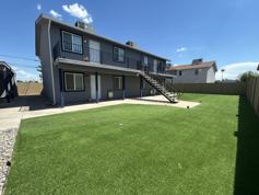 Outdoor Space: Relax and unwind in the private lot featuring low-maintenance artificial turf.
