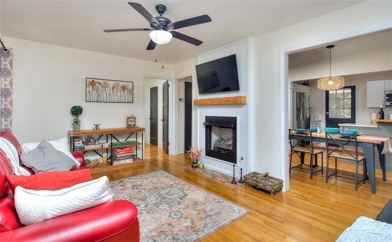FULLY FURNISHED. Welcome to The Mill House, a charming 1946 renovated brick bungalow in the heart of Hapeville, where character and coziness come together to create the perfect pet-friendly retreat. This 2-bedroom cottage offers a relaxing, home-like stay with spa amenities available. From the moment you arrive, you'll feel at ease in a space where modern comforts blend seamlessly with classic details like original hardwood flooring and wainscoting. Inside, the spacious living room features a fireplace and flows effortlessly into a screened-in patio with hanging hammock chairs - a perfect spot to enjoy your morning coffee or unwind in the evening. The newly renovated kitchen boasts quartz countertops, stainless steel appliances, new cabinetry, and a convenient breakfast bar for casual dining, while a separate dining room provides a traditional space for meals or game nights. The home is fully stocked with everything you need, including toiletries, cleaning supplies, emergency essentials, and all the cookware and appliances for a hassle-free stay. For entertainment, relax with Netflix, Hulu, or cable TV, enjoy over 15 board and card games, or get creative with the giant Scrabble wall. Step outside and discover a lush perennial garden that feels like a hidden oasis. Relax in the outdoor hammock or host friends and family on the patio off the kitchen. For the ultimate treat, indulge in the hot tub/spa, available for an additional fee (contact the host for special offers). A covered parking area accommodates up to 3 vehicles - a rare feature in this area! Located in Hapeville, a City of the Arts, the home is less than 7 miles from downtown Atlanta and just 5 minutes from Hartsfield-Jackson Atlanta Airport. Walk to local restaurants, the historic Academy Theatre, and other nearby attractions. With easy access to major interstates, exploring the area is effortless. Fully furnished for short, mid or long term lease. Rates subject to change based on length of stay and occupancy. Please note, utilities are the responsibility of the tenant. Please contact for showings.