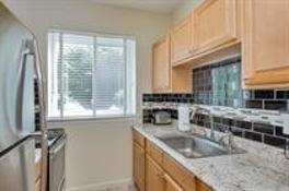 Gorgeous recently remodeled two bedroom home . This home features new cabinets, a custom tiled backsplash, under cabinet lighting, stainless steel appliances (frost-free fridge/freezer, oven/range), a remodeled bathroom, new doors throughout, new closet shelving (there's no lack of closet space this home has 5 oversized closets) with a closet organizer in the main bedroom, a ceiling fan in the dining area, air conditioning and brushed nickel fixtures and finishes.