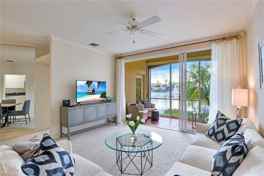 Now 4 months minimum for season 2026! Enjoy a quiet setting with lovely views of the lake from every window. This first floor 2 Bedroom/2 Bath home has been extensively renovated including both bathrooms, the kitchen plus appliances, new A/C unit, and new washer and dryer. Coastal inspired interiors and large windows give the condo extra light and Florida charm. Just a short walk to nearby shopping, Pelican Bay tram, community center, fitness, and clay tennis courts