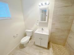 The kitchen has stainless appliances, fridge/freezer and electric stove/oven. Plenty of cupboard space and a pantry. The bathroom is beautifully tiled with large tile shower area.