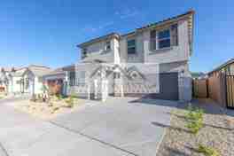Don't miss out on this Brand New 5 bedroom, 3 bath home, located in the Rancho Mercado community of Surprise! This beautiful home comes with all new appliances, including Fans. Upgraded tile and carpet. 5 b/r (5th b/r is downstairs and has closet with door with full bath - great for office! Guest room Downstairs. You will love this great room, dining & kitchen combo with tons of upgrades. Spacious kitchen has 42'' Coffee Brown upper cabinets with soft close doors, gas range, large pantry, Granite counter tops and a Center island! Gorgeous mountain views!! Tons of storage! 4 other bedrooms upstairs. Full upstairs bathroom. Primary suite has walk in closet, bathroom with dual sinks, and separate toilet room. Close to schools, parks, shopping, dining, entertainment and More! Schedule your showing Today!