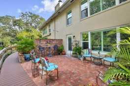 One or more photo(s) has been virtually staged. Available for annual lease Jan 2026. Gorgeous 2 story Town-home,1833sf, 3br, 2 1/2 bath & oversized 2 car garage. Beautiful wood flooring throughout, (no carpet). Streaming natural light with large picture windows adorned with plantation shutters. Cozy up to the wood burning fireplace. Most of all, enjoy relaxing on the large brick patio overlooking the crystal clear waters of the spring fed pond and seeing wildlife; fish, turtles, and birds. There is a boardwalk which meanders along the entire pond & property, including bridges that take you to the small Banyan Tree Island. Hawthorn Pond, is a small enclave of 10 town-homes located on a natural spring-fed pond close to Bayshore Blvd just East of MacDill on Gandy with sidewalks leading from Gandy Blvd to Bayshore Blvd. This property is high and Dry and did not flood. Features include newer wood floors throughout upstairs bedrooms and downstairs living areas, wood burning stone fireplace, new impact windows, new custom plantation shutters, and fresh paint throughout. The kitchen has brand-new stainless-steel appliances kitchen back splash, and a separate kitchen dining area. Upstairs, the master suite offers serene views on the pond side, w/new custom cabinets in the master bath & quartz vanity, separated from the additional 2 bedrooms & hall bath. Storage is abundant, storage under the stairs, walk-in closets, linen closet, and custom cabinets in the garage with work counter. Floor plans attached- All measurements to be verified. Tenant responsible for renters insurance, electric, & internet and applications for Hawthorn Pond association $50 each adult, with 7 day turn around, and credit check with Rent Spree $39.99 each adult. Minimum 670 credit score, no subleasing. Possible to renew annual lease 1-3 years.