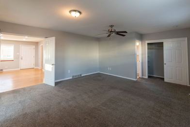 Hardwood flooring + carpet in bedrooms