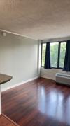 University Towers features a swimming pool, trash chute, secure building with cameras, garage parking for lease, and a laundry room on-site. Owner pays water and sewer for you. You will have an electric bill for heat and air, as well as any internet/cable services you choose to have. Large windows allow in plenty of natural light, and there is new laminate flooring throughout the unit to give that extra touch of modern.