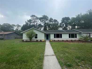 3/2 (Northwood Oaks) Beautiful split floor plan home with custom brick accents and large landscaped yard. Home greets you with a parquet floor entry foyer with a big window with views of the backyard. Living room boasts vaulted ceilings, laminate wood floors, brick wood burning fireplace with mantle and custom mirror. The jumbo picture window offers lots of natural sunlight, and sliding glass doors leading to a large screened in back porch overlooking the backyard. Kitchen displays butcher block countertops, stainless steel dishwasher and fridge, pass through window to the living room, and another set of sliding glass doors to the screened porch. Separate dining room with large windows and vaulted ceilings. Master bedroom boasts a walk-in closet with a closet organizer. Master bathroom has a spacious stand-up shower enclosure and a window overlooking the yard. Bedrooms display new laminate wood floors. Hall bathroom features new vinyl tile flooring and a tub/ceramic shower combination. Attached 1 car garage with storage and utility room.