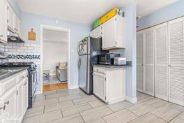- Fully renovated kitchen featuring stylish granite countertops, brand-new tile flooring, contemporary tile backsplash, and stainless steel appliances—including a gas range, refrigerator, and dishwasher.