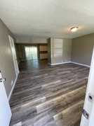 Plank flooring in living room, dining room and kitchen area! Bedrooms have carpet!