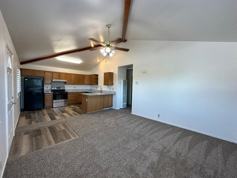 Come check out this upstairs two bedroom 2 bath Duplex. Owner has out done himself again. He loves to make sure his tenants are happy with their home. Newly painted interior. New wall to wall carpet and luxury vinyl flooring. Fenced yard and deck. Kitchen has refrigerator, electric stove, dishwasher, washer and dryer in the property. large size bedrooms with lots of closet space. Garbage is included. Wall heater in hallway. Window air conditioner left as a convenience from previous tenant. Off street parking for 1 small size car in driveway. Exterior of building to be painted in June 2023.