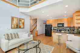 Stunning, sunny 3bd/2bth River West/Goose Island duplex-up penthouse features a bright front living space and large vaulted ceilings with skylights, gas fireplace, & open kitchen with breakfast bar. Two bedrooms, a full bath, and private back deck complete this level. Upstairs to master suite which includes double vanities, two closets, & a private deck with skyline views. Top floor also offers additional lofted living space/office. Spectacular 28x18 private rooftop deck with sweeping panoramic city views. One covered garage spot and tandem exterior parking spot included in rent. Easy access to expressway & CTA Blue Line. Walk-to-everything location, steps to West Town, River North, Fulton River, & West Loop. NOTE: photos are from when unit was occupied by owner. Unit will show differently as tenants are occupying unit. Renters willing to sign a multi-year lease will be offered $50 reduction per monthly rental rate.