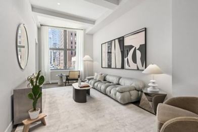 ZMP82560217 - An exquisite 1-bedroom residence showcasing an oversized floorplan with a home office and dining area, modernized SoHo loft style with unique high ceilings and two deluxe bathrooms. The residence features an open concept for living and dining, as well as versatile home office. Features include broad plank Russian white oak wood floors, central heating and cooling, elegant tilt-and-turn Schuco windows with automatic black out shades, Crestron Smart Home System, keyless Latch entry and in-home Miele wash/dryer. The kitchen finishes indulge style and functionality with white lacquer Europlak soft-close cabinets, a spacious waterfall island perfect for morning coffee and breakfast; exquisite Caesarstone Calacatta Nuvo countertops and high-end Miele appliances. The bedroom features a luxurious en-suite bathroom with double vanity, a deep soaking tub, Marmont Matt porcelain floor and a Toto toilet. (model photos of similar residence)The residence has two baths which feature brushed nickel fixtures and radiant heated floors. This unique residence located in the heart of SoHo, offers full-service amenities: 24-hour doorman, package room with cold storage, bicycle room, private storage units, and a modernized fitness center. Steps to world-class restaurants, bars and cafes such as Balthazar, Jack\'s Wife Freda, Lure Fishbar, Le Coucou, The Musket Room, Estela, Hirohisa and Momofuku Ko (amongst many others), the property\'s prime location, proximity and access to Hudson Square, Tribeca, Chinatown, and the Hudson River Greenway additionally make 11 Greene a much sought-after property. Building Amenities:Bike RoomCold StorageGymPackage RoomStorage Available