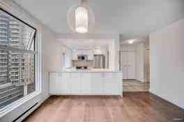 One bedroom + small den area. Bedroom will fit King Size bed and dresser. Hard wood floor, freshly painted Benjamin Moore " Chantilly Lace" White. Stainless Steel appliances including washer / dryer. Storage in suite. 4 piece bath. Building includes gym, sauna, hot tub, rec room, huge social room that can be rented for events, 2 separate one bedroom suites that can be rented out for family at nightly rate, bike storage and underground parking.