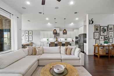 Beautiful 4 bed, 3 bath & office home on a corner lot in Light Farms across from chicken park! This home also has a 3-car garage with 1 car area extended to accommodate longer vehicles. The open floorplan with wood floors offers an expansive living space, tons of natural light & plantation shutters! The kitchen is a true gathering place with a huge granite island, SS appliances, butler's pantry and a walk-in pantry. Main bed and bath are located downstairs with dual vanities, walk in shower, soaking tub and a huge walk-in closet. A secondary guest suite on the main floor has its own bath with walk in shower and is near the garage and utility room. Up the wrought iron staircase, a game room,2 guest rooms with a Jack and Jill bath and tons of storage. The backyard patio is extended and covered. Flagstone walkways to a fire pit, eating space, and a storage shed. Amenities include parks, pools, fitness, and front lawn care. Available short term for an additional monthly fee.