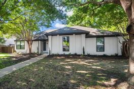 This home is a low-maintenance dream- Landlord pays for weekly professional mowing AND quarterly HVAC filter changes. This thoughtfully redesigned single-story home features a fluid floor plan maximizing natural light through expansive windows and high-end finishes. With zero carpet throughout, the layout transitions seamlessly from grand entertaining spaces to private retreats, offering a clean and modern aesthetic in every room. The heart of the home is a dramatic living area anchored by sophisticated floor-to-ceiling wall paneling and soaring vaulted ceilings with a contemporary ceiling fan. Adjacent to the living room, the dining area features a bright bay window and a designer light fixture, flowing directly into a gourmet galley kitchen equipped with crisp white quartz countertops, sleek grey cabinetry, a subway tile backsplash, and full stainless steel GE built-in appliances. Designed as a true sanctuary, the primary suite offers a spacious bedroom with wood-look flooring and a large walk-in closet plus an additional closet. The ensuite master bath is a showstopper, featuring a contemporary granite-topped vanity and a deep, freestanding soaking tub set against elegant marble-style tile. Two additional well-sized bedrooms provide flexibility for guests or a home office. The secondary bathroom has been fully upgraded with a modern vanity and a sleek walk-in glass shower boasting premium hardware and stunning floor-to-ceiling marble-patterned porcelain tile. The property sits on a lush lot at 4420 Sterling, shaded by mature trees and featuring a striking white brick exterior with a bold turquoise entry door. Enjoy the large, serene yard and extended back patio without any of the work or mowing. Located in a quiet, established pocket of Plano, this home puts you in a prime location w easy access top-rated schools, shopping, and dining. This neighborhood offers the perfect balance of suburban peace and convenient access to major thoroughfares for an easy commute.
