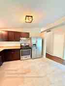 -Fully Equipped Kitchen featuring gas stove, oven, refrigerator, garbage disposal, and microwave.