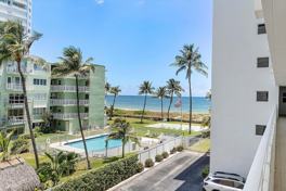 DARK GREY Leather Couch is presnt. Enjoy the beautiful ocean view, & the ocean breeze and sounds, everyday! Owner has carefully taken care of this very comfortable 2 bd condo w/ stainless steel appliances, granite countertop, large island for your cooking & baking, canned lighting, large flat screen tv, tile floors, two walk in closets, new leather recliner chair, & outdoor seating & lounge chairs to relax w/ a spectacular ocean view! This building is very well run, all construction restorations have been complete, and no construction noises. As soon as you enter the lobby, you can tell the building is freshly painted, quiet, very relaxing, heated pool, and plenty of parking. Building does not allow pets. Owner prefers a 12 month lease.