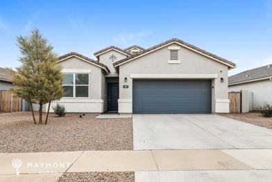 Out back, a covered patio provides a sheltered outdoor area overlooking the low-maintenance yard, a useful space for outdoor seating or simple relaxation. With its spacious interior, functional layout, and easy access to nearby parks, local amenities, and major roadways, this Coolidge home brings a welcoming balance of space and convenience. Apply now!