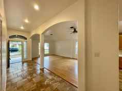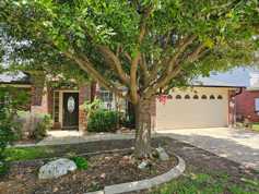 Single story in quiet Cedar Park neighborhood. This 3 bed / 2 bath home includes an office with solid doors that could be used as a 4th bedroom. Beautiful hardwood flooring in formal dining, office, and living room. Tile fireplace surround plus tile floors in entry and hallway. Open floorplan with decorative arches - kitchen flows into family room and breakfast area plus overlooks covered patio and inviting back yard with large trees.