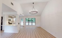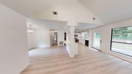 Fully renovated, one-story contemporary home located near Cary Woods. This property's renovations include: luxury vinyl plank floors throughout, interior and exterior paint, complete kitchen and bath remodel. Open kitchen and great room have an abundance of natural light with views of the wooded backyard. All bedrooms are spacious and updated with contemporary lighting. Bathrooms have clean lines and high end finishes.