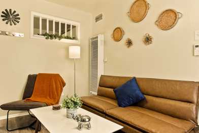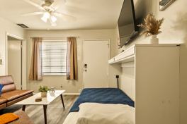 Apartment that has it all!! 1 bedroom 1 bath in the quiet Cozy Nest Apartment complex. Complex is one block away from Walmart and many other restaurants. Easy access to the freeway and Fort Bliss. Recently Renovated. All Utilities included as well as 200mbs internet. Furnished with a queen bed, Couch that pulls out to a queen bed and a twin murphy bed and Large TV. Sleeps 5. Comes with kitchen ware. *** Pictured couch is slightly different from actual couch.