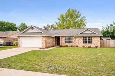 Beautiful brick 3/2 in Coral Creek! Freshly painted interior (2024). Tile floors in main areas, carpet in the primary bedroom only. Split floor plan, and large great room with brick fireplace. Updated kitchen with quartz countertops, subway tile backsplash, center island with custom butcher block countertop. There’s also a breakfast room and separate dining area. Spacious primary bedroom with private en suite that includes double vanities, garden tub, separate shower, and walk-in closet. Inside laundry with hookups and 2-car garage with opener. Privacy fenced backyard with open patio and stunning sycamore tree that serves as a focal point. Convenient and close to NAS Pensacola, downtown, shopping, restaurants and schools!