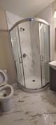 A bedroom with private full bathroom on upper level. In the house 3 Upper level bedrooms, 1 bedroom on main level, 2 bedrooms on lower level. Kitchen on main level and lower level.