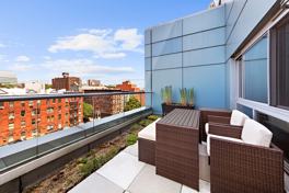 Rarely available three bedroom, two bath Penthouse home with Western exposure overlooking the tree lined boulevard and historic Harlem townhouses. This penthouse has two separate uncovered terraces with planting all around. Convenient location paired with modern amenities featuring a resident lounge and a gym, and carefully selected finishes, combine to form this residence of sophistication and warmth. The open living and dining area leads you to the first of the two terraces facing West. A chef's kitchen featuring a Liehberr refrigerator, Viking range, microwave and dishwasher and framed with lacquered cabinets highlighted with under the cabinet LED lighting. The backsplash is finished with elegant Daltile white glass tile. The unique Breakfast Bar can be moved aside for large dinner parties to allow additional space for entertaining. Luxuriate in the serene primary bath outfitted with a stall shower, sand natural custom glazed porcelain tile, Kohler Commode and satin nickel Danze fixtures. The second bath features a Kohler soaking tub. The residence also includes an exterior vented Washer/Dryer. Designed with a walk-in closet in the primary bedroom, and ample wall space for art or accenting. This doorman building is prewired for Verizon Fios.