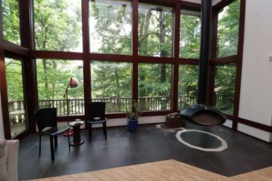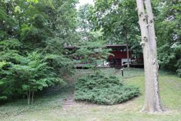 Detached two-car garage has a large room underneath that is perfect for storing items that require climate control and/or creating a play area.