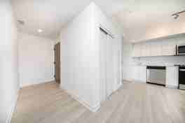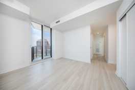 Walking into the Condo you are greeted with a bright open space with plenty of windows since it is a corner unit. The patio door opens to a beautiful balcony with a downtown skyline view. The many windows provide full sunlight through out the day. The Kitchen features brand new fully equipped appliances, granite countertop and ample storage and counter space. There is in-unit laundry and 2 FULL bathrooms.