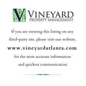 If you are viewing this listing on any third-party site, please visit our website, www vineyardatlanta com for the most accurate information and quickest communication.
