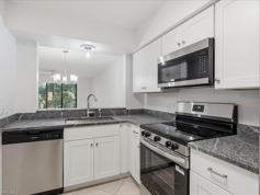 REMODELED GOLF COURSE CONDO! 2nd floor 2bd/2ba condo in Foxfire Golf & Country Club overlooking the water, preserve, landscaped areas and partial golf course views from the balcony and master bedroom. Diagonally laid tile throughout living areas, with vinyl wood flooring in bedrooms. Kitchen remodeled with all new white shaker cabinets, luxury granite countertops with leather finish, and stainless steel appliances. Master bathroom has also been completely remodeled with all new shower, vanity cabinet with marble countertop, and the guest bathroom vanity was replaced as well including quartz countertop. Balcony has been enclosed to the A/C with sliding glass doors that allow for extra space, and screens are also still in place to enjoy the beautiful outdoor weather Naples offers as well. Foxfire offers 27 holes of golf, recently updated clubhouse w/ restaurant, har-tru tennis courts, pool, and more! Condo offered for rent annually unfurnished for $1800 without golf privileges, or $2300/mo. with golf privileges. Social membership transfer fee is $500; golf membership transfer fee is $850.