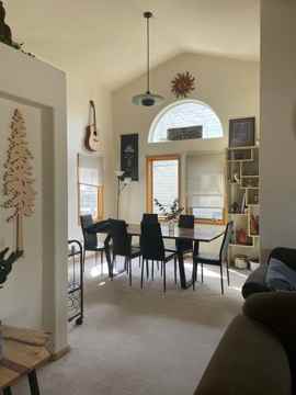 This 4-bedroom, 3-bathroom home offers vaulted ceilings, abundant natural light from large windows, and two comfortable living areas that provide plenty of space to relax or entertain. The main level also features a dining area and an attached garage for added convenience.